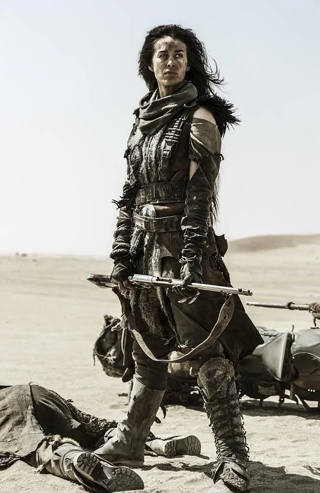 Mad Max: rugged layers, leather/denim, scavenger accessories.