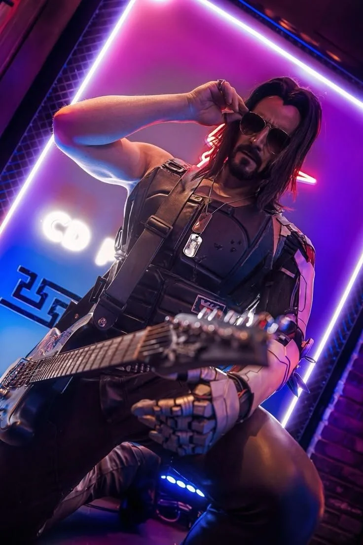 Cyberpunk: neon accents, chrome details, techwear, LEDs.